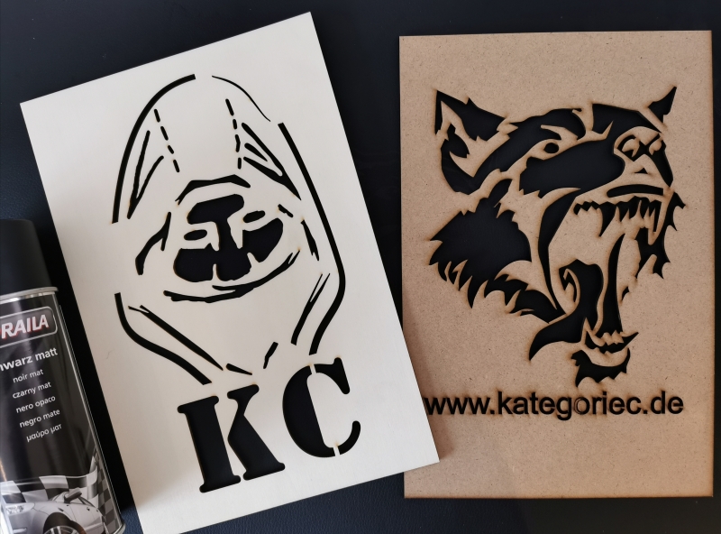 2er Set Schablonen Kategorie C Wolfskopf und KC Schablone Deutscher Junge mit Sprühdose